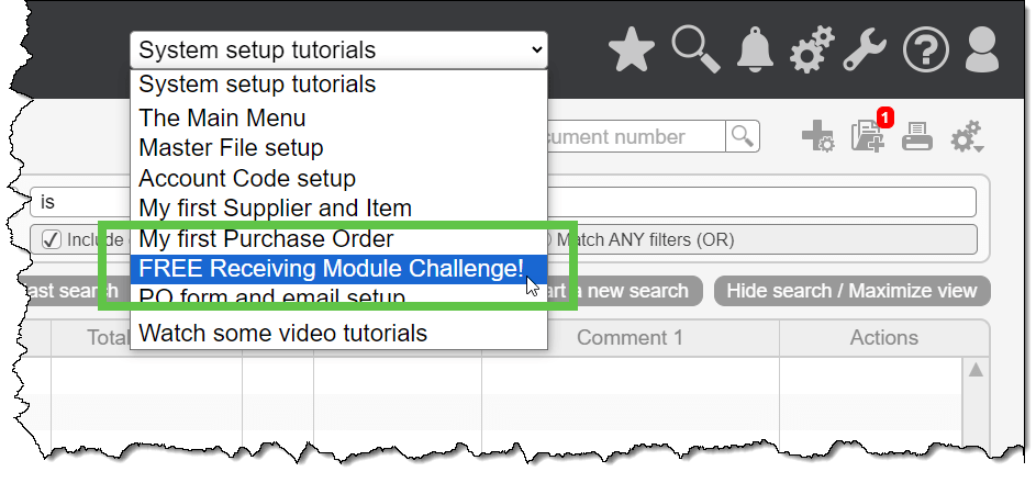 All you have to do is complete the Walkthrough Tutorial called “Free Receiving Module Challenge”, at the top of the Main Menu in your free Purchase Order Software from SpendMap…